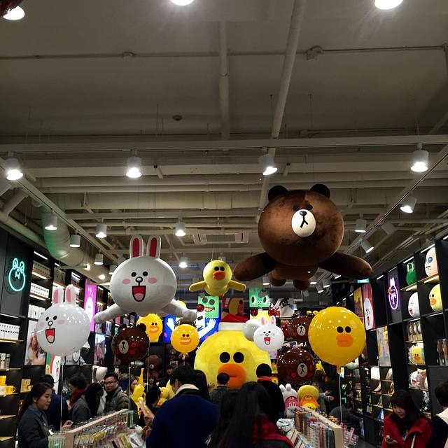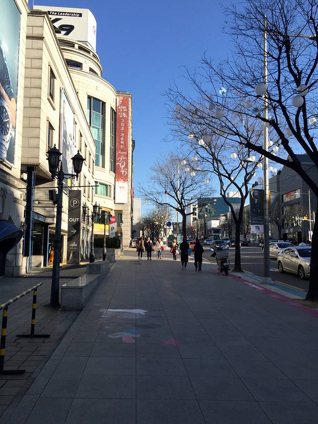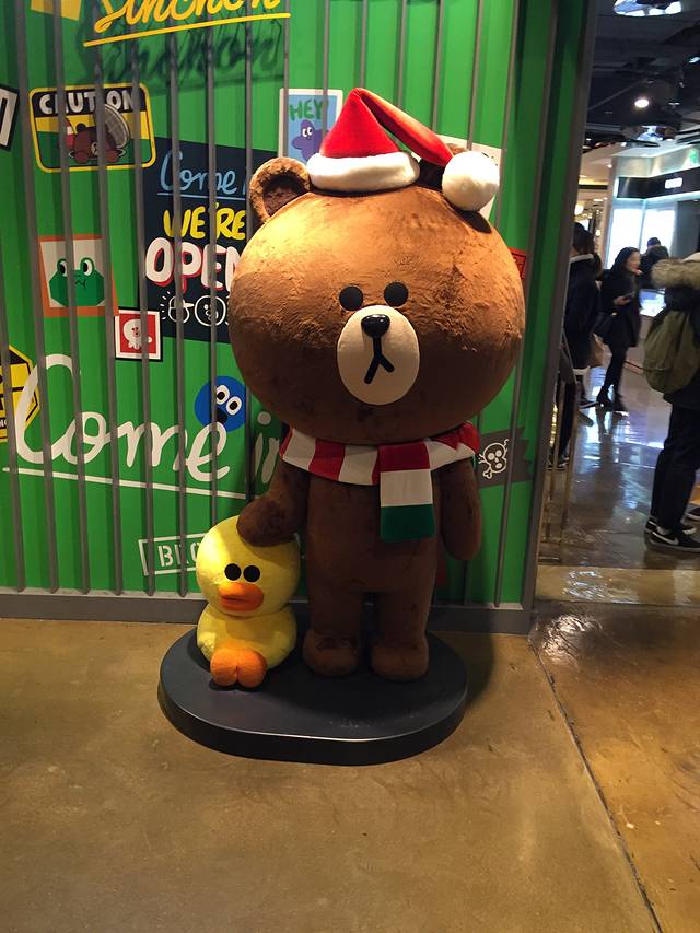 line打卡,林蔭路冬天光禿禿的,秋天應該會很美吧。新沙洞這家店一共有三層樓,1樓主售line friends人物公仔,文具,小飾品等,2樓銷售成人和兒童服飾,3樓是VIP專區,目前還未開放。