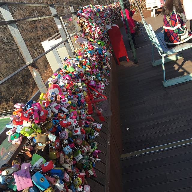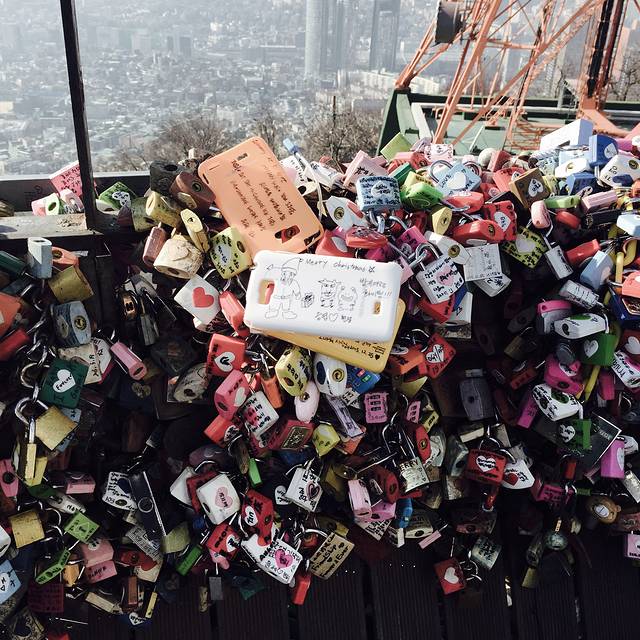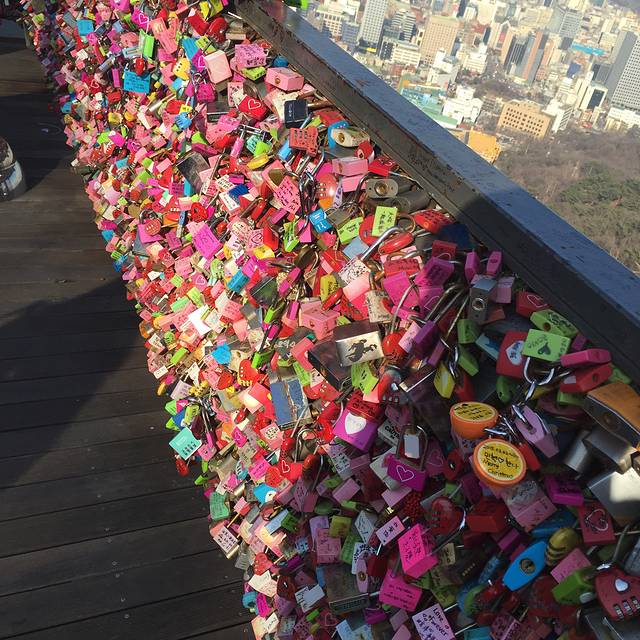 對於喜愛韓劇的朋友們該很熟悉,《我的名字叫金三順》、《花樣男子》、《魔女幼熙》《需要浪漫》等電視劇都與南山結下情緣。所以愛情鎖的風景角也成為年輕男女朋友,對愛情的憧憬和播撒希望的神聖之地。遊客們帶著不同的心情,鎖著各式各樣的愛情的故事,讓這裡充滿著幸福。