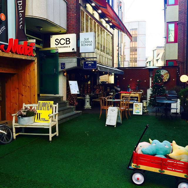 CLUB是弘大文化的象徵。在這裡隨處可見徹夜享受Techno、 Hip Hop、Acid jazz、R&B等各式音樂,韓國的年輕人們。同時,標榜獨立的樂隊或活動於大眾文化之外的地下音樂家們,在咖啡屋、酒吧或俱樂部進行的小規模的舞台演出,還向人們展示出弘大俱樂部文化的另一番獨特景致。在弘大晚上逛的話可以購物到他們年輕的設計的服裝飾品 服裝 隨處可見的咖啡廳 甜品!