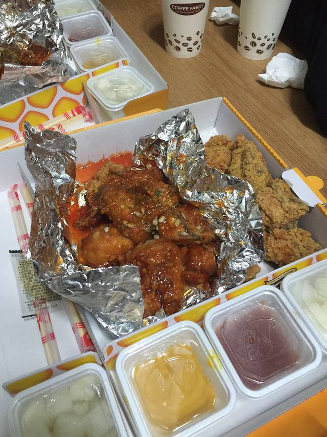 杯子炸雞 第一辣味 第二年糕 最後是原味