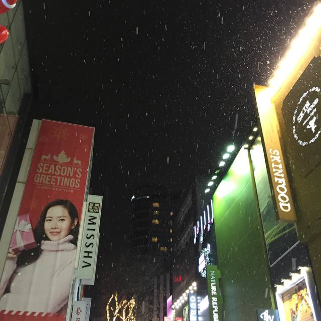 重頭戲來了!回到民宿附近 時間大概11點左右 離聖誕節倒數一個小時過去 我跟我朋友都在抱怨那麼冷都不下雪 聖誕節不下雪像沒過一樣。然而20分鐘後…