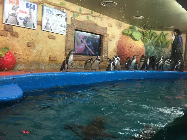 “蓝色深海”里有大螃蟹、神秘的水母以及外形奇特的深海鱼,昏暗的展厅带给您深海的观赏体验。该区拥有韩国最大的企鹅水槽,您可以看到约20只企鹅有序的潜入水里,好萌