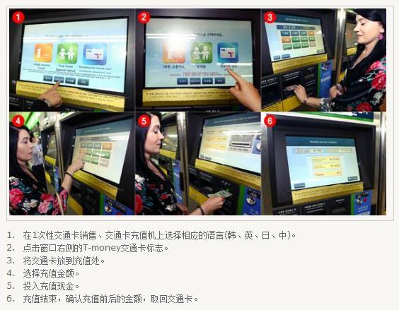进出地铁站闸口是,都可以看到有T-money字样的平台,直接放上去感应,听到“滴”的一声,就表示感应、扣款成功。