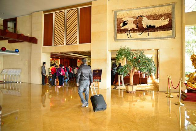 进去到酒店大堂,看到这个阵势,我心想还好提前订房了……人很多,都围在了酒店前台周围。