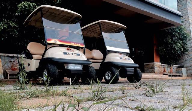 练习场里面的高尔夫球车,电瓶车来的,样子很Q~