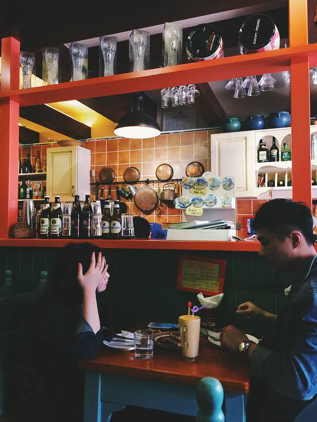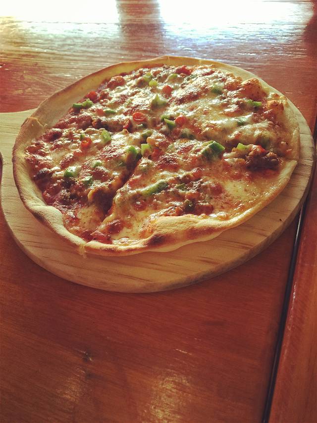 天一热就变得像红烧猪头,真的不适合出镜了,嘿嘿~很快就打道回府了,我们都热的气喘吁吁,在还车的对面,男朋友看见了一个披萨店,很是心动,而且环境比较好,还可以吹空调
