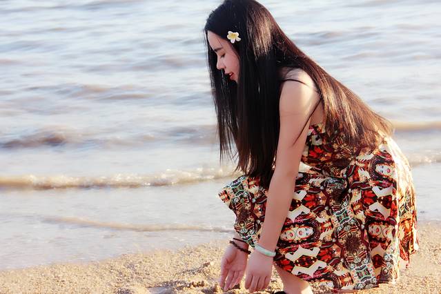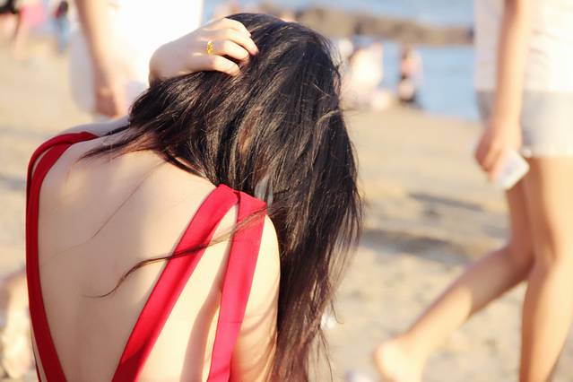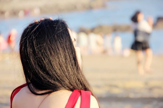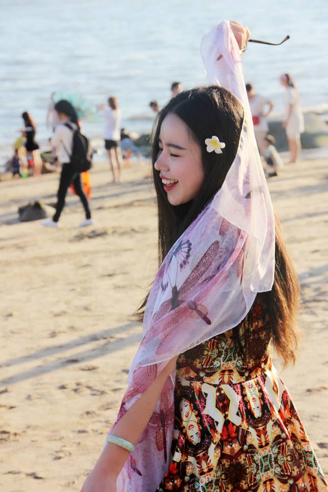 骑了很久,到了人很多的地方,这里的道路旁有很多类似椰子树的树,这里是最热闹的地方了,但是天越来越晒,我都没有下水,躲在树荫下~大家肯定会比我勇敢,哈哈