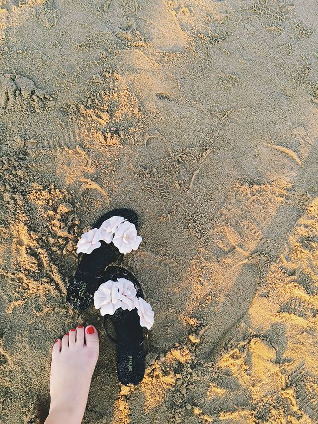 环岛路上有几个坡,下来推了好几次,天开始热起来,有个地方停下来想下沙滩,结果沙子不是很细,上面还要碎玻璃,真的是要注意了。