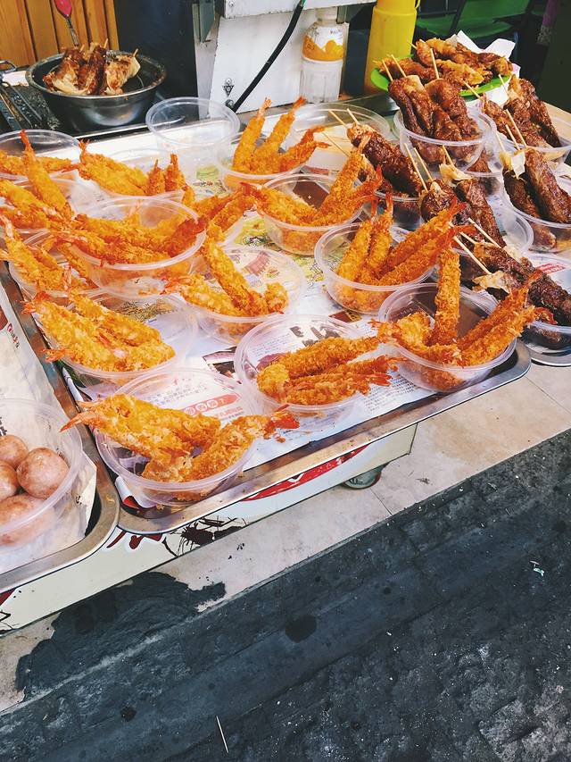 出门了就是曾厝垵很热闹的小吃街,白天很热闹,到了晚上十点多基本也都打烊了,绝对不会影响休息。我和男朋友午餐都没有吃,真的超级饿,先是点了我们爱吃的烤鸭卷,15块4个卷,1人2个,几秒就没了,哈哈,根本不够塞牙缝。