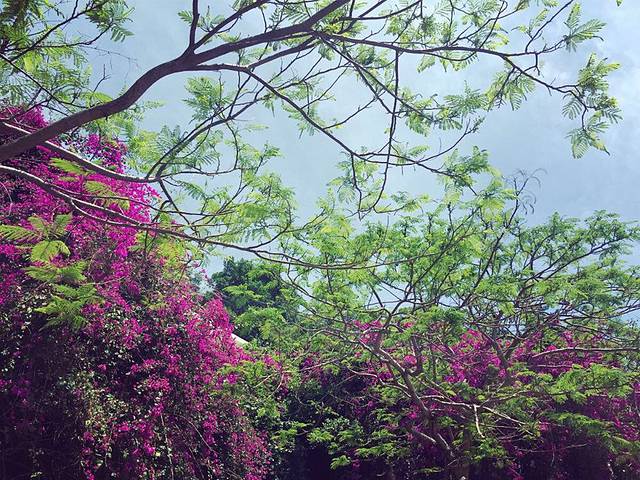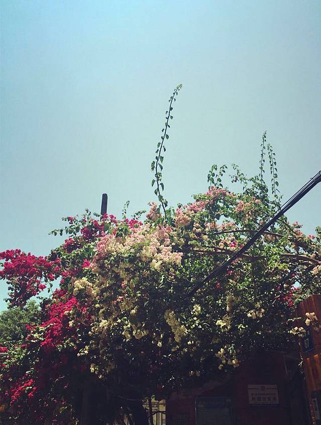之前是炮仗花的季节,现在是三角梅的季节,这是一个由海和花组成的小岛。