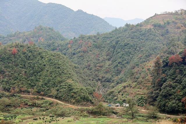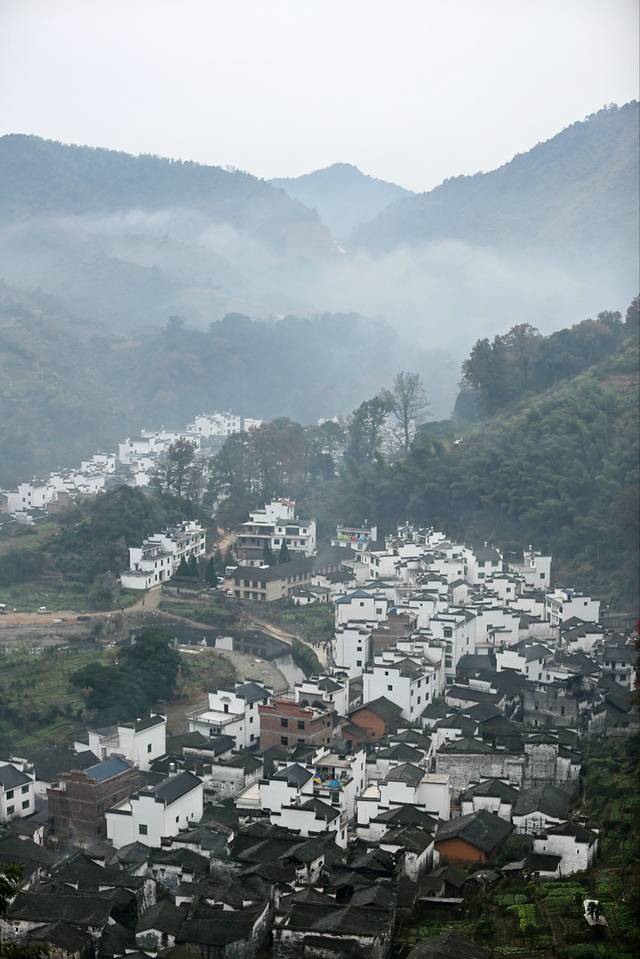 爬到一处小土坡上俯瞰菊径村,又是另一番风景。