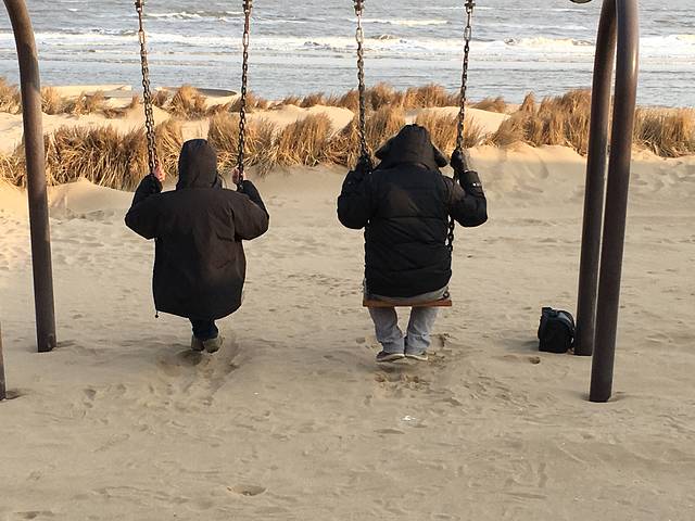 粗发,海边