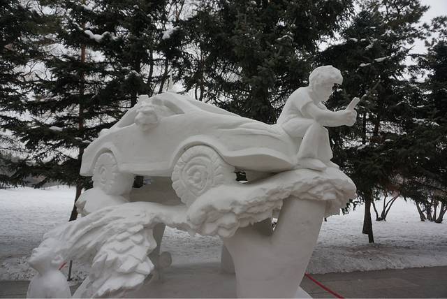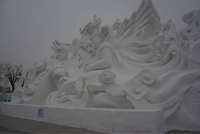 看到这个我好兴奋啊,首先它很高,然后它很白,再次它很美,最后,我有生之年第一次见。拍了好多张,怎么也比不上人眼2亿的像素好。后来看多了,就没那么震惊了,其实这个在雪博会里是入门级别的。
