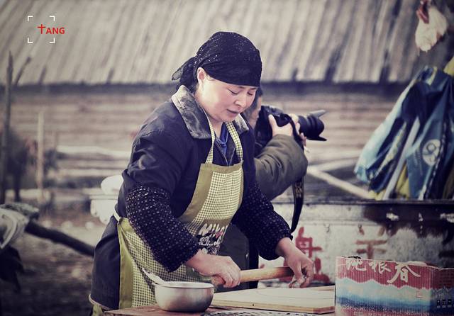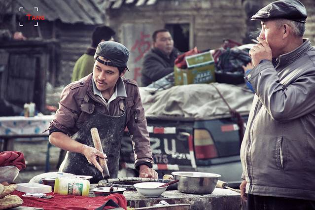 热闹的早市,有各式各样的早点。这位卖饼小哥的档口特别火。