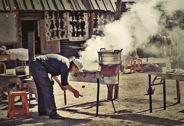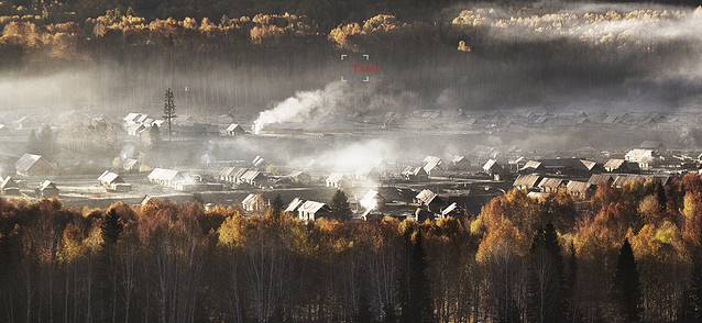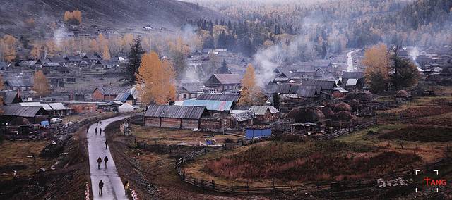 清晨的喀纳斯村笼罩在云雾里,像云中漫步一样。正如这里的质朴一样,住宿条件也是比较简单的,那时候还没有电热毯。前一个晚上我们一起劈柴烧火,融雪烧开水喝,睡前把炉子加满碳保证一整晚的供暖。入夜,还能听到屋外有小动物的声音。客栈老板说,以前深冬时,他在这里捕捉到狼。