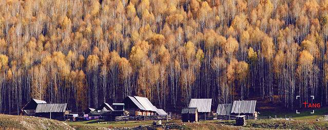 已经三年过去了,很多细节记不起来了。记得当时我们8个人在磨房约伴集结,从四面八方到乌鲁木齐会合。住宿都是到了当地现找的,只要找到第一家,后面全是连带着介绍住进去的。北疆风光最美的时候大概是9月下旬,20几号,如果当年冷得早,也可能20号前叶子就黄了。