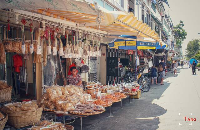 这里的海产干货是手信的首选,品种多样价格实惠。这个老太太叼着烟,包租婆的阵势。