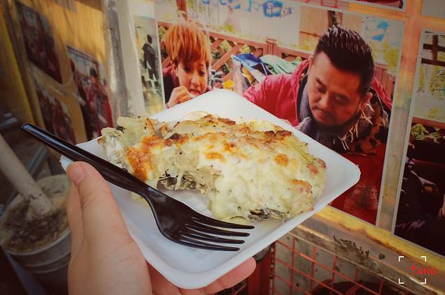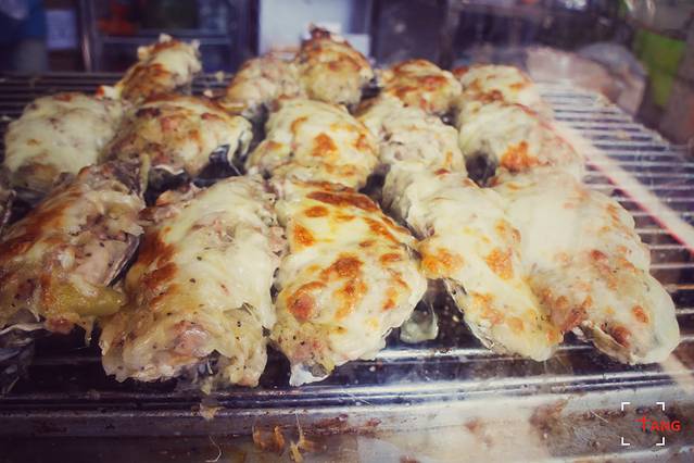 往右手边走,狭窄的街道布满了各色小吃,这是当地很有特色的芝士焗生蚝,浓郁的芝士味,鲜嫩的生蚝,食过返寻味呀!