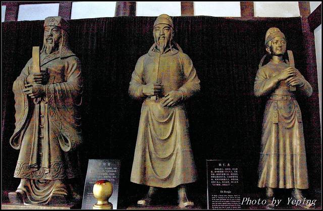 殿内左右两侧,塑有高宗、武周朝九位著名大臣,我们熟悉的,有上官婉儿(右)和狄仁杰(中)