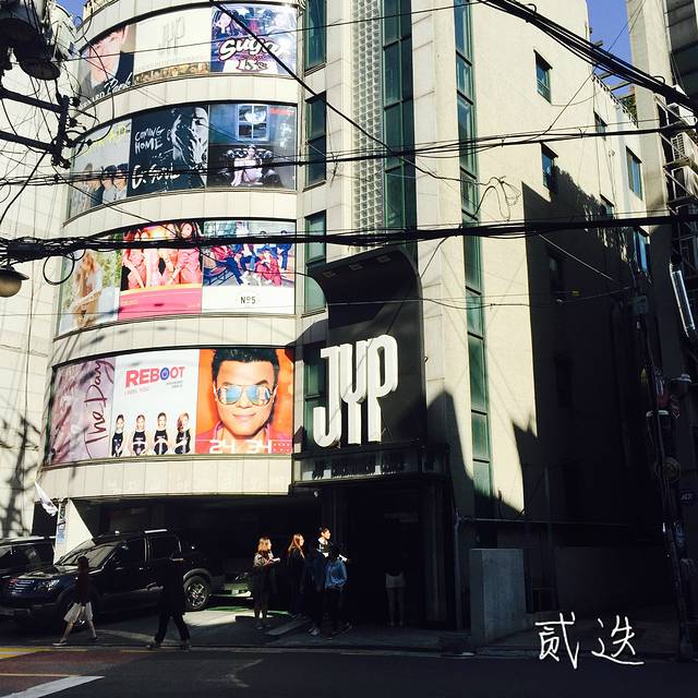从地铁站出来直接就导航去的SM,后面又有一次坐公车去,另一个路口进去其实就会先看到JYP,这三大娱乐公司是在一片的,FNC的话就在SM的后面,所以当我在SM守着能不能看到我喜欢的明星的时候我小伙伴就去FNC守帅哥了。门口还会有好几个国家过来看看韩国明星的年轻人。