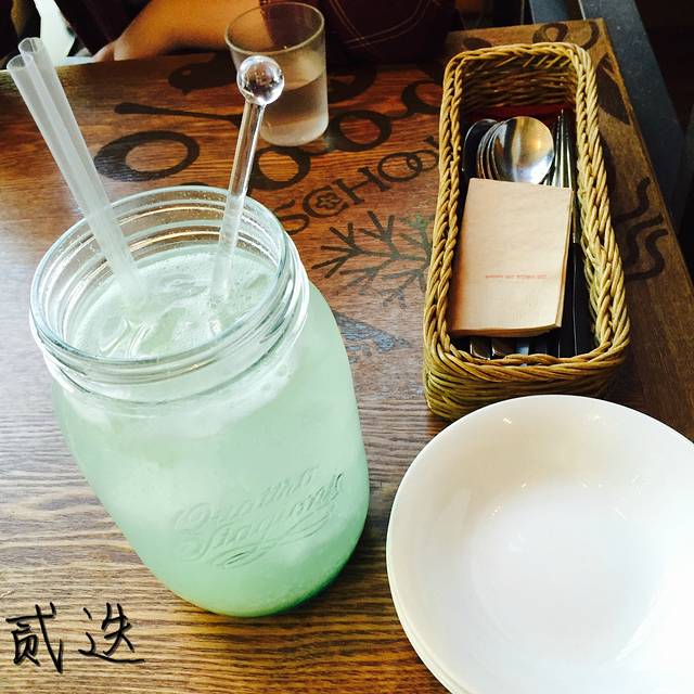 排队排了好久的,拿号等位,店里没有会中文的服务员,不过记得菜单上面好像有中文,反正不用担心点餐,直接打钩要吃的然后给服务员就可以了。上图是我们点的饮料,好大一杯,两个人一杯就够了。味道也赞。