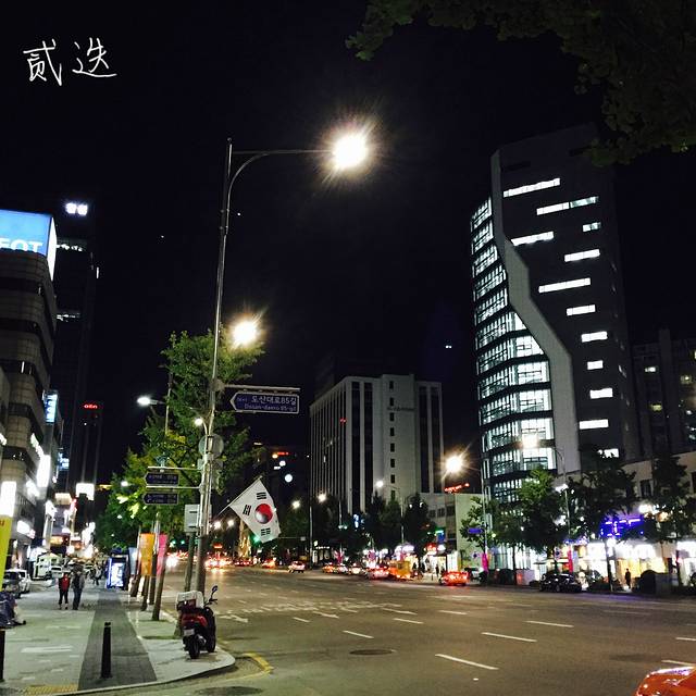 等到天黑了还是没有等到一个明星,我们就放弃了,依然徒步走去地铁站(事实证明后来再来一次我们选择从明洞那坐公车过来更近,所以真的推荐公车出行)。江南区的夜景也是安静空荡别有情调的。
