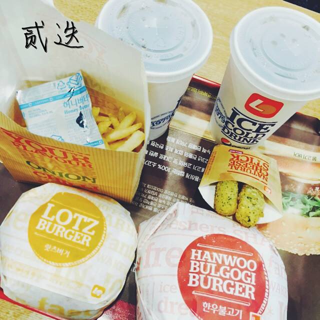 在机场吃了韩国游的最后一顿,乐天的汉堡包,我能说真的比国内那些快餐店的好吃嘛,薯条什么都还行。两个人可以点个双人套餐。