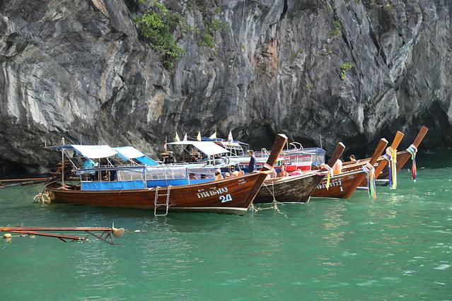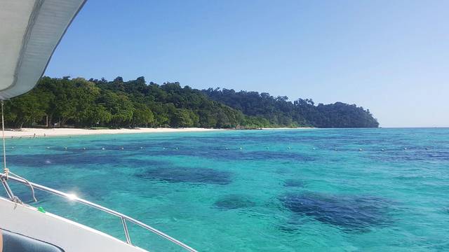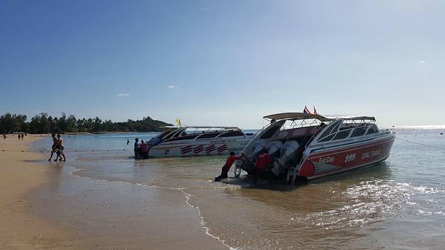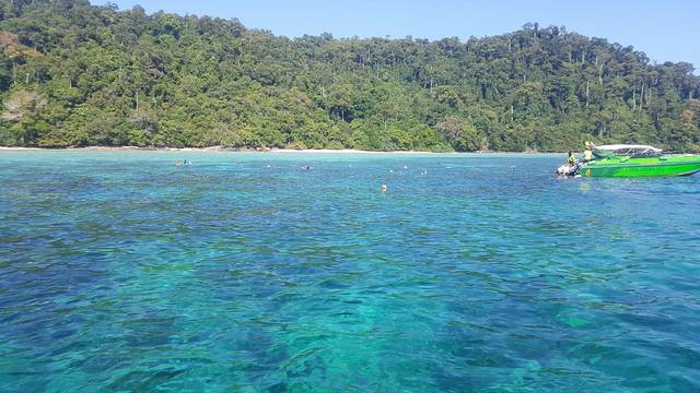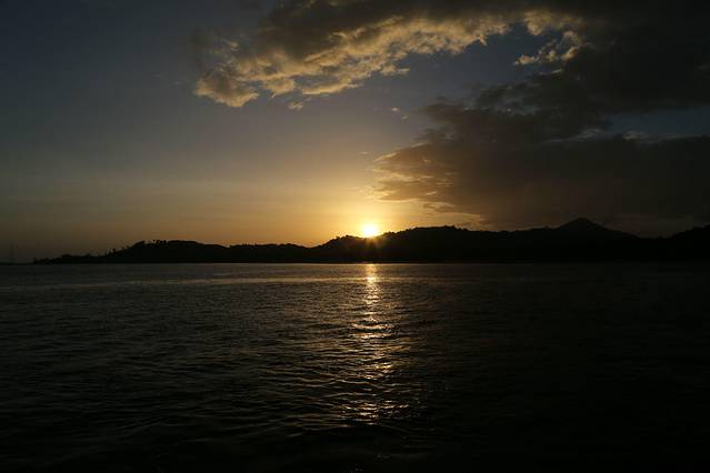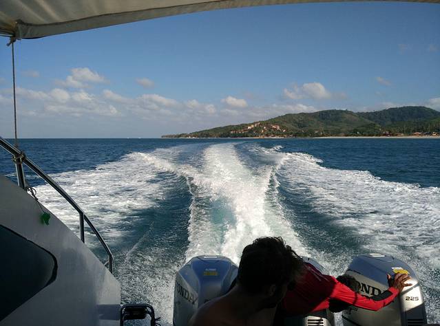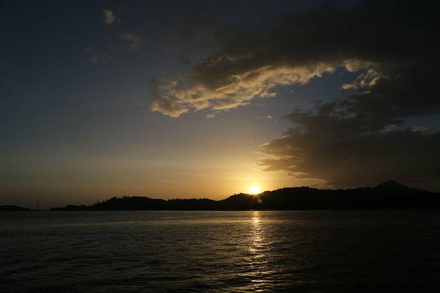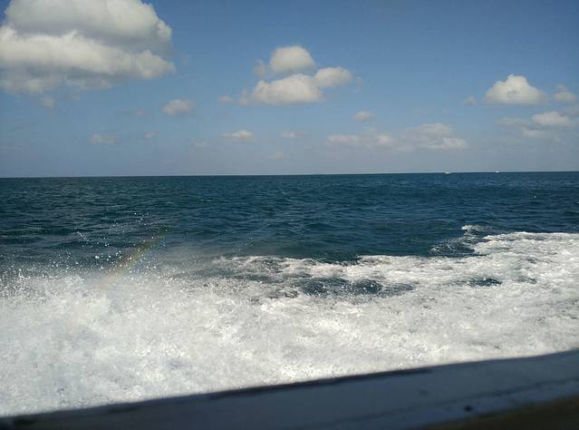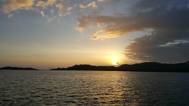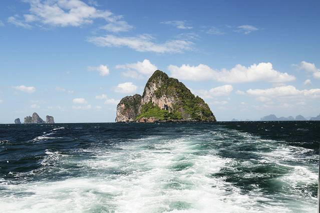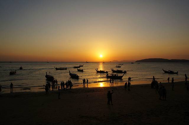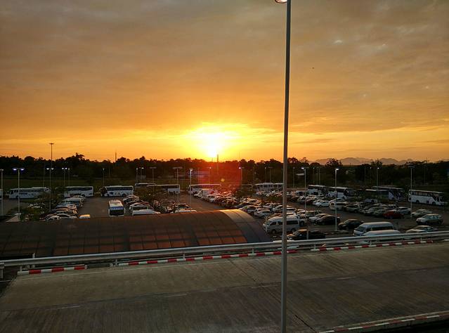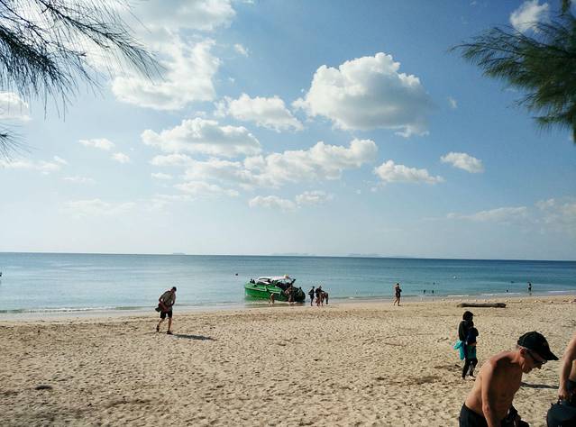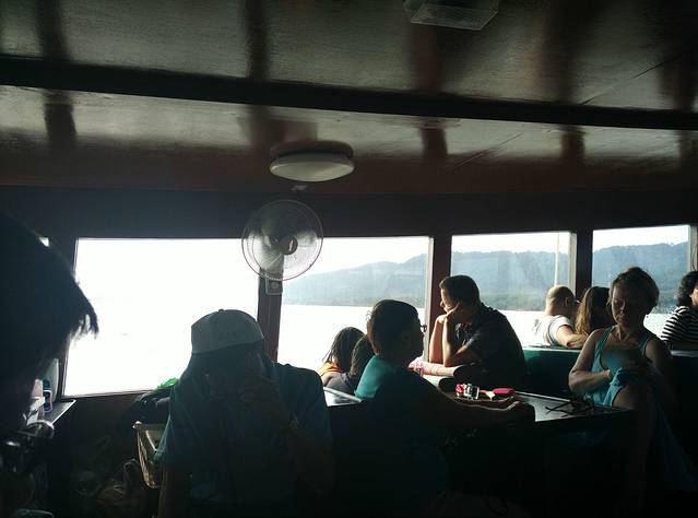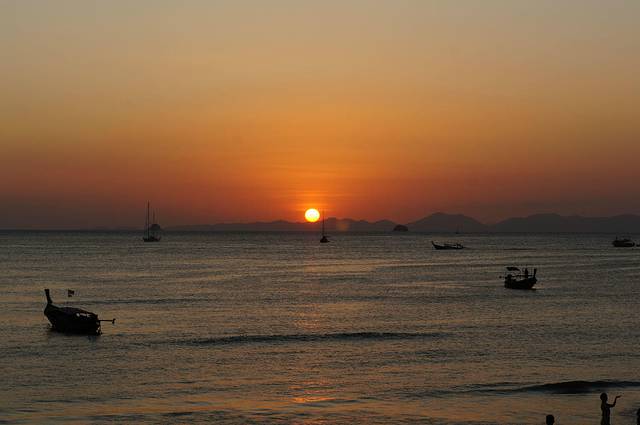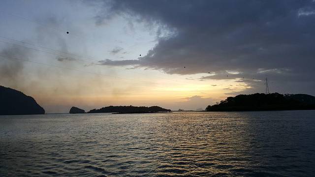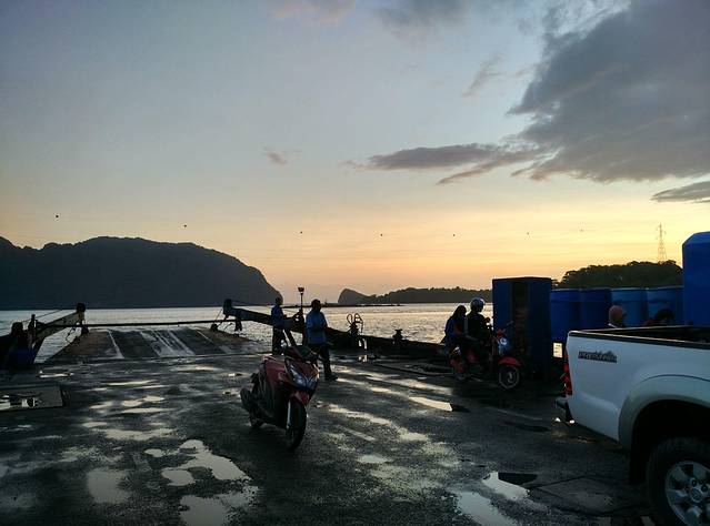 亚航的红眼航班,到达甲米机场是凌晨5点,包车的司机已经到了,还以为要在机场等到天亮司机才到呢,来的是9座车,连同拼车的一对夫妻总共6个人,也不错,反正我能躺下补个眠,睁眼的时候已经到了渡轮上,这时恰好日出,新鲜的空气,没有雾霾,没有PM2.5,只是渡轮上的机油味也不好闻orz