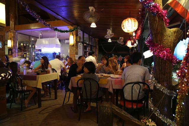 餐馆外面虽是沙滩,不过都是礁石滩涂