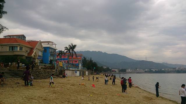 wrong choice, 搭了部公交沿着海岸线,经过大梅沙小梅沙盘过山路,足足2H才到了大鹏站,离所城还有4、5KM,但坐着坐的快要吐了,就没再转车,干脆看着地图步行,路上的夕阳真美,暴风雨的一周,我却神奇地躲过了~safe~