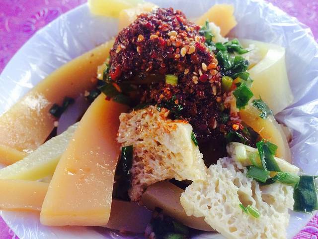 在塔尔寺外面有超级多卖小吃的摊位,临走前再吃一碗青海著名的酿皮,圆满了