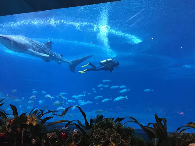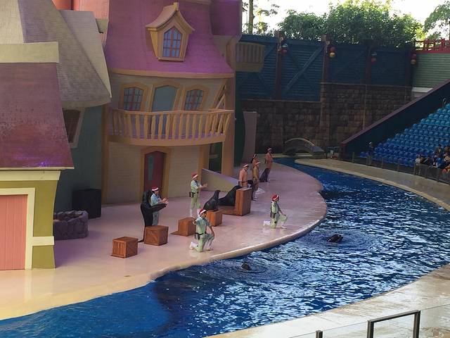 海洋王国洋溢着浓浓的圣诞气氛,所有工作人员都带着圣诞帽,乐园内还有很多圣诞装饰,很有感觉。