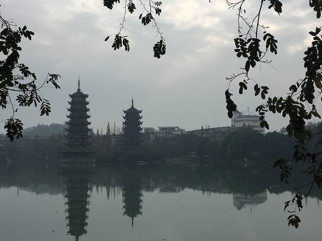 从椿记烧鹅走路20分钟到了日月湾码头,桂林著名的日月双塔,一金一银。