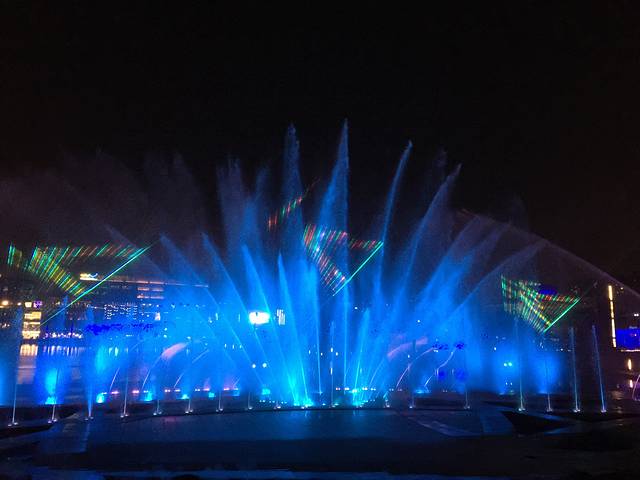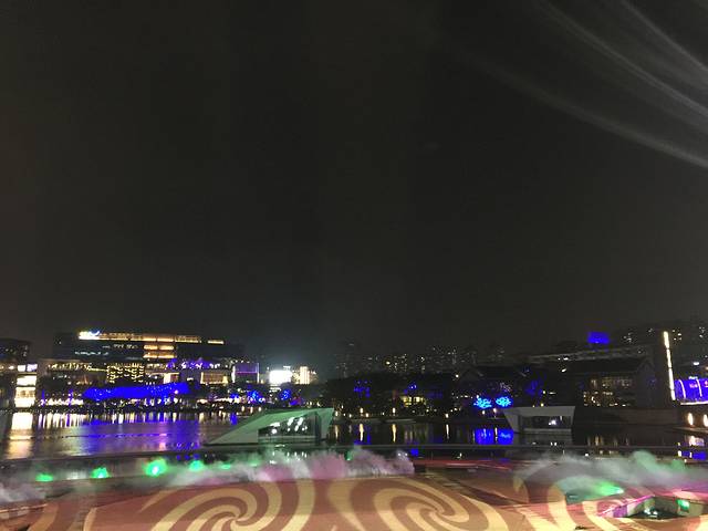 晚上在欢乐海岸吃过饭看水幕表演。不知道为什么国内的电影都拍的那么吓人,珠海海洋王国的5D电影也是,吓得小朋友在妈妈怀里从头趴到尾,不敢看,也没有真善美,和喜羊羊熊出没一个路子。
