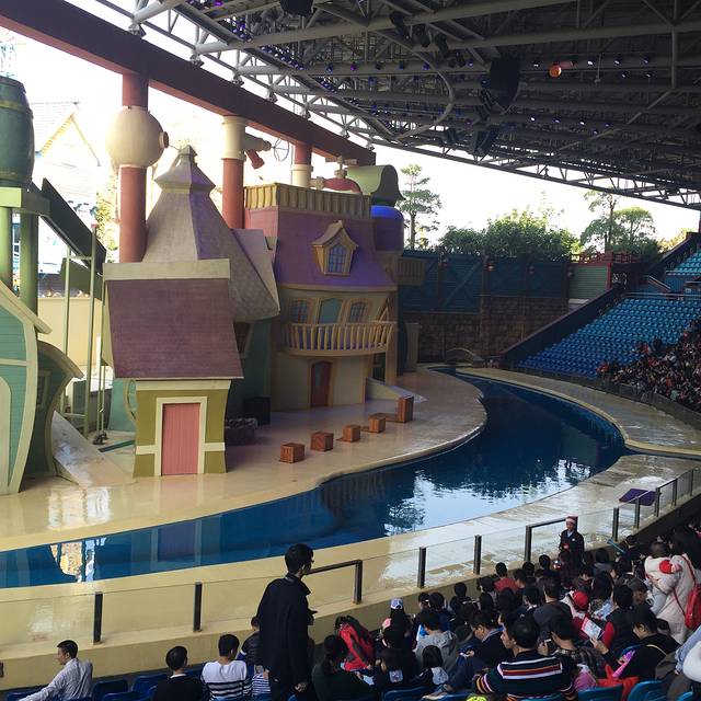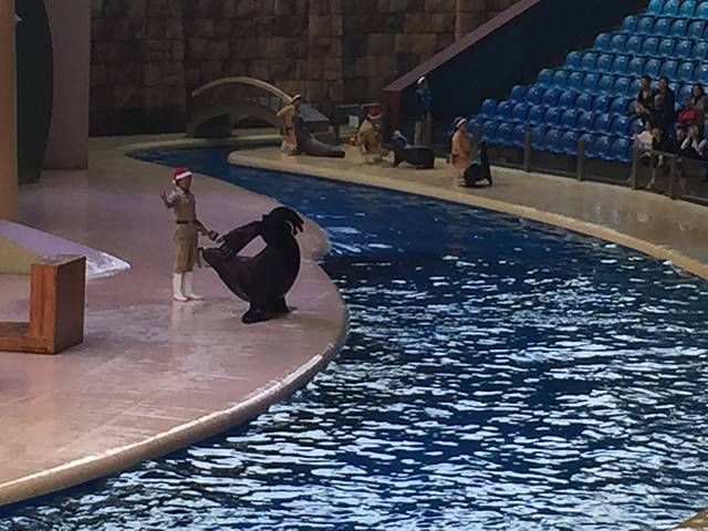 从深圳到珠海有点堵车,在一点钟到了横琴长隆海洋王国,进去后正好赶上海豚表演。
