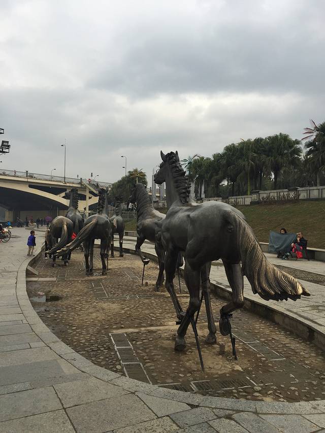 从解放路码头下船,看到六匹马雕塑。这里很难打车,所以叫神舟专车回酒店。