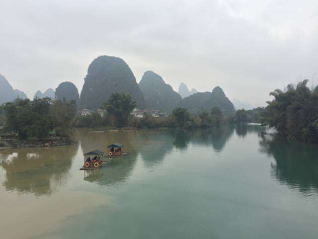 在酒店楼下定的白天一江四湖的游船,因为带小孩晚上游船又冷又晚不安全,白天就少一个江价钱也要便宜一半以上,而且桂林雾蒙蒙的看不清楚什么,还不如白天看得清楚。桂林阳朔几乎什么都不用提前定,遍地都是卖各种票的,完全不必担心,很适合我这种说走就走没有规划的人。