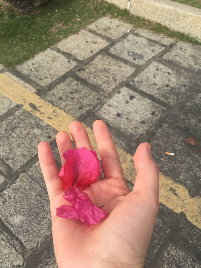 女儿捡的花瓣,小孩的幸福就这么简单,希望她能多保留这份纯真与美好。