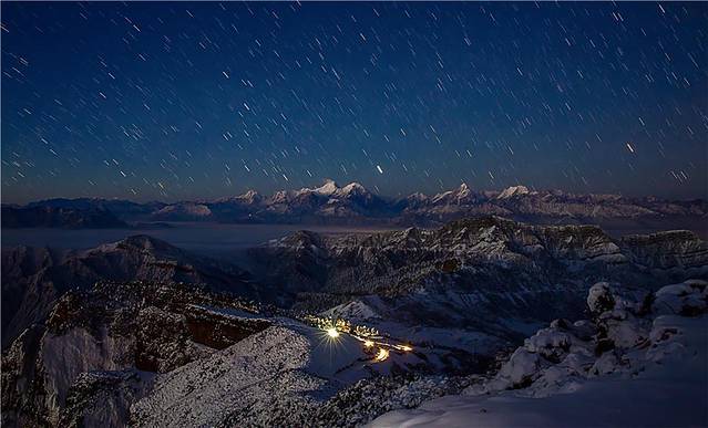 3、星空:山上的星轨是非常壮观的,你可以不用等到夏天,便可以在山顶观赏满天的繁星,伸手触摸天空,仿佛自己置身在星河之中。许多摄影爱好者也都陆续前往拍摄星轨的壮丽诗篇,成就了许多大片。