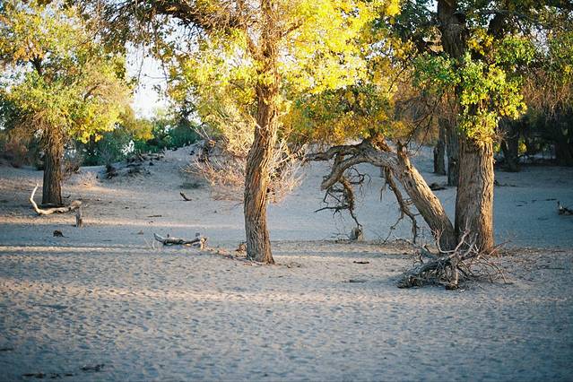 这一天的下午去了久负盛名的胡杨林。不去后悔,去了更后悔。景区套票240(想骂人),一二三四七八道桥可逛,二道桥有倒影,四道桥是英雄林即《英雄》拍摄地,也有许多奇形怪状的胡杨,七道桥叶子最黄最美,八道桥靠近沙漠。恩,对于喜欢的人来说,买个三日票连逛三天性价比还高点。