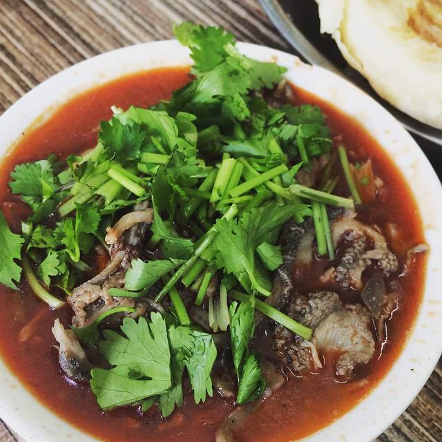贝尓是当地人推荐的馆子 早上八点多的样子店里人全坐满啦 女生建议还是叫半碗 配半个焙子吃就差不多了