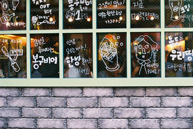 原本以为赶在星期六的中午到达首尔,下午还能去弘大逛个freemarket,结果高估了自己的找路能力。两点的样子从位于明洞的guesthouse出发,换2号线坐到弘大站,出来问了圈人愣是没找弘大,更不要说门口的freemarket了,看看时间,三点多了,freemarket可是16点就结束了啊!好吧放弃!然后看这腔势,一心想着要去的弘大附近的aA art museum cafe也是别想找到的,好吧随缘!于是随便拐进弘大商圈的某条小路开始逛了起来,虽然这天没有按预设的进行,但是也算不错!(唯一租了随身wifi的某同学因为要去看GD演唱会暂时和我们分开旅行,这也直接导致了路盲们的一天)