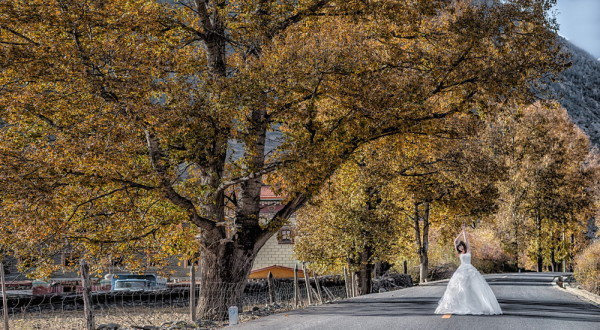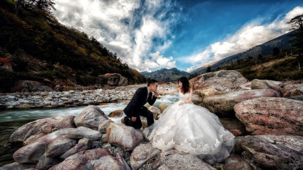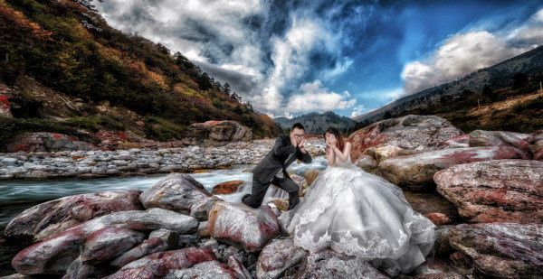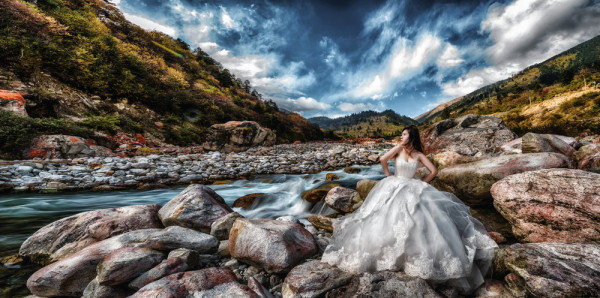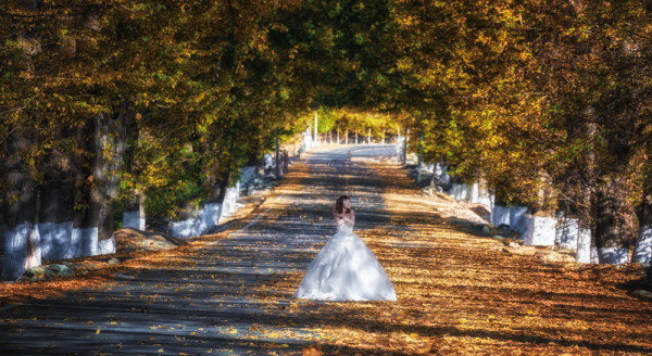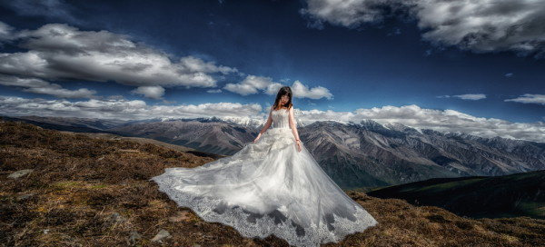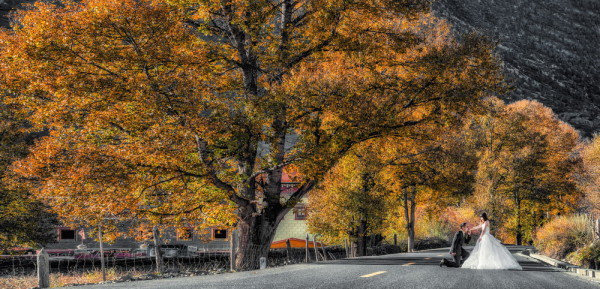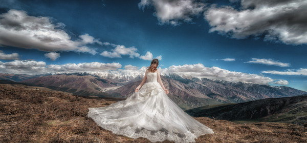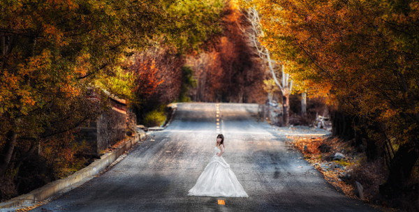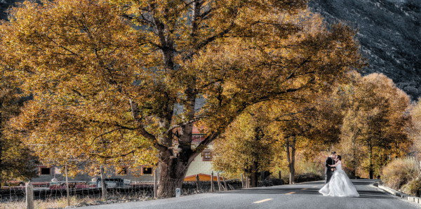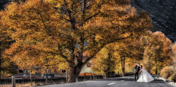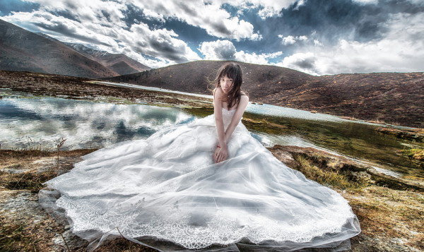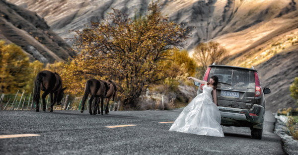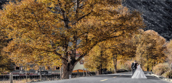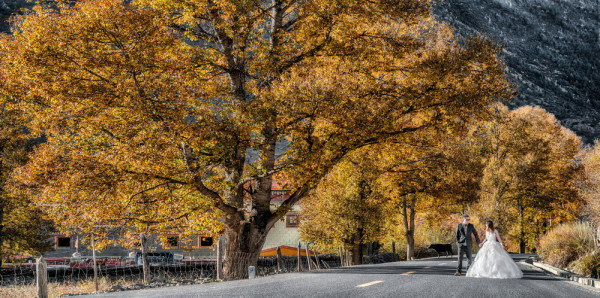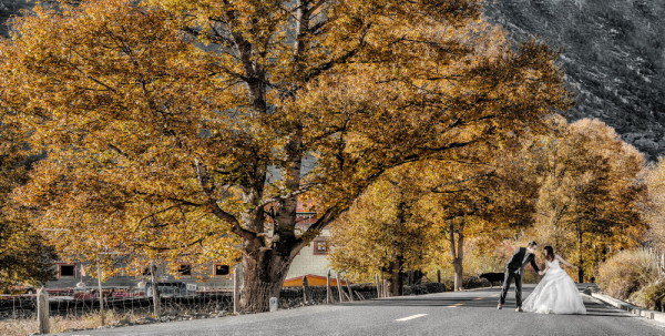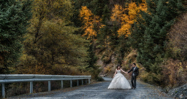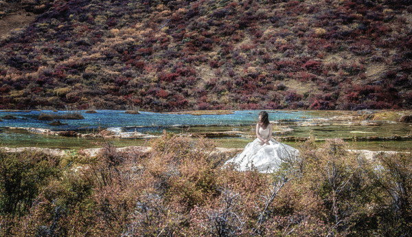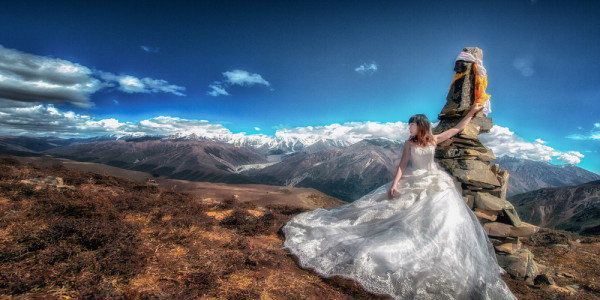 这趟旅程缘起于8月底吴先森去了一趟子梅垭口,那天晚上他拍到的肥美银河自此在我心中疯狂长草,在漫天繁星下来一组婚纱SHOW成了我一直憧憬的梦想。原定于国庆的出游计划被吴先森一而再再而三的放鸽子,委屈得哭了好几场的我也只能面对残酷现实,不曾想,国庆后突如其来的两天假期却成就了一趟说走就走的旅行,金黄灿烂的新都桥、雪粒翻飞的子梅垭口、乌云盖顶的泉华滩,因了一件婚纱两个人,演绎了一场高海拔之恋。