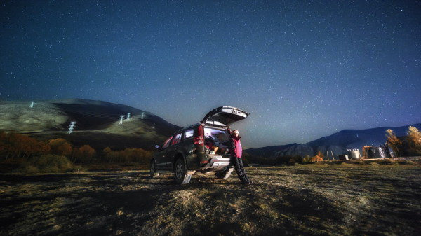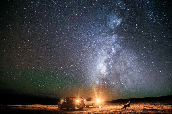 19:00左右回到新都桥,在雅克客栈终于吃到了热呼呼的水煮肉片,吴先森找到之前就看好的一片空旷之地,开启星空下的秀恩爱模式。当时温度接近零下,实在没有勇气脱了冲锋衣换婚纱,星空下的婚纱秀只有再等下一次机会了……