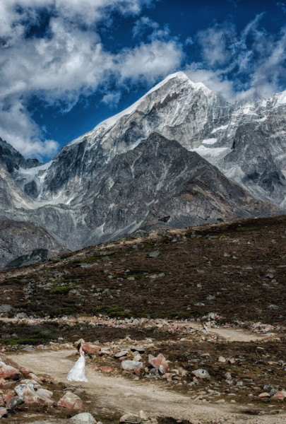 早餐很简朴,馒头配牦牛奶,温热的牦牛奶倒在碗里,还覆着一层薄薄的膜,不需要加糖,已经是满口醇香。吃完早饭,和主人挥手告别,我们沿着昨晚上垭口的路再开去。