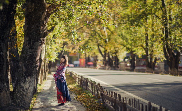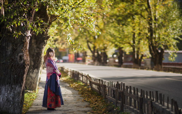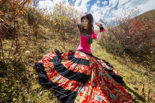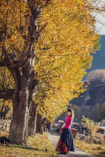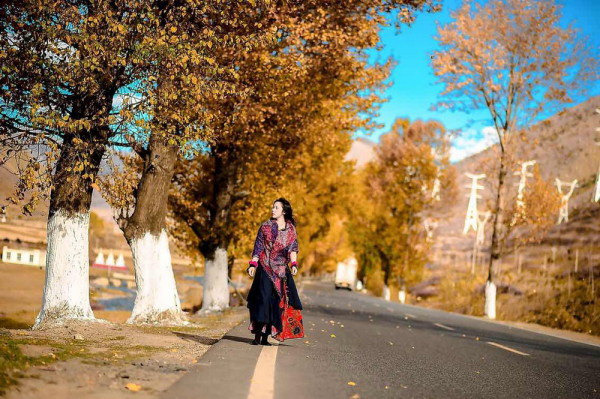 十月的新都桥,美若油画,不知明年今日,站在此处的又会是哪位美娇娘