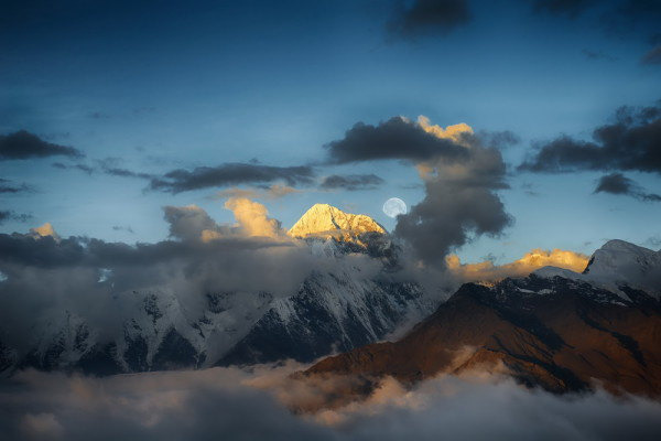 雅哈垭口海拔4568米,距贡嘎山主峰直线距离约30km,是观赏“蜀山之王”贡嘎山主峰及贡嘎群峰的极佳点。天气晴好的时候,此处看日照金山也是无与伦比的绝美。