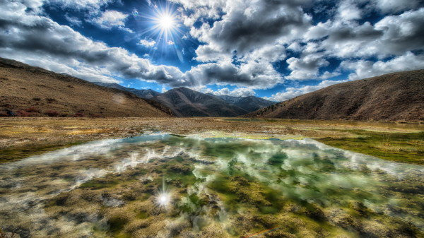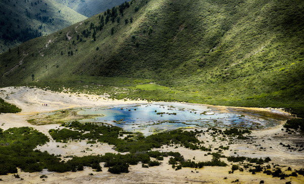 泉华滩海拔约4000米,有“小黄龙”的美誉,更赞的是不同于黄龙的圈地式观景,这里可以直接走到泉水中间。平时是不准将车开进景区,去的那日正是周一游客稀少,和看门的藏族阿妈交涉了一下,付了50元车费就长驱直入了。(门票25元/人)