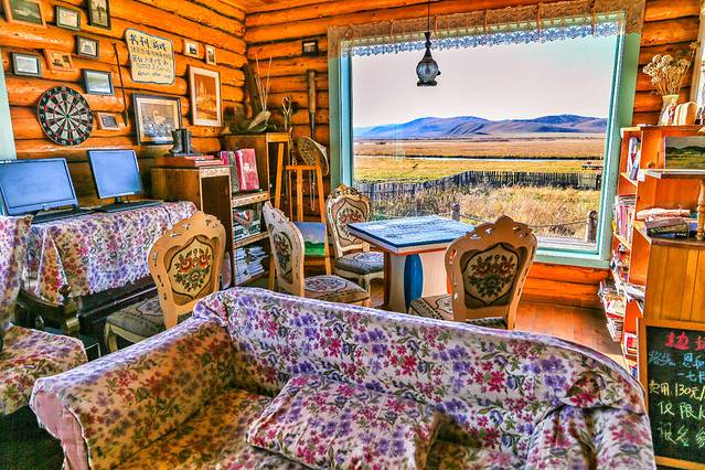 离开根河,经过一次转车终于来到了最后的目的地恩和俄罗斯民族乡。接近九月底的这里已经变得异常冷清,想要找到开门的商店都已经不多了。选择入住了恩和国际青年旅社。带有乡村异域风情的大厅,让我一下子爱上了这里。