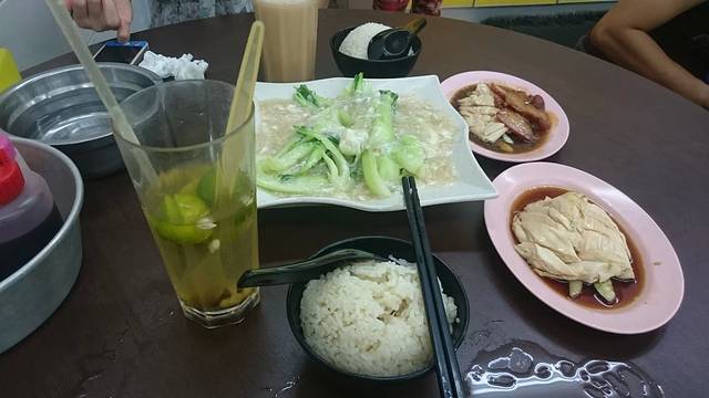 五星海南鸡饭~点了桔子冰~拉茶~海南鸡饭~鸡拼叉烧~菜(ps个人觉得一般~拉茶还可以吧~鸡肉不好吃~叉烧还好吧~菜还是太爽了...不过米饭好好吃)